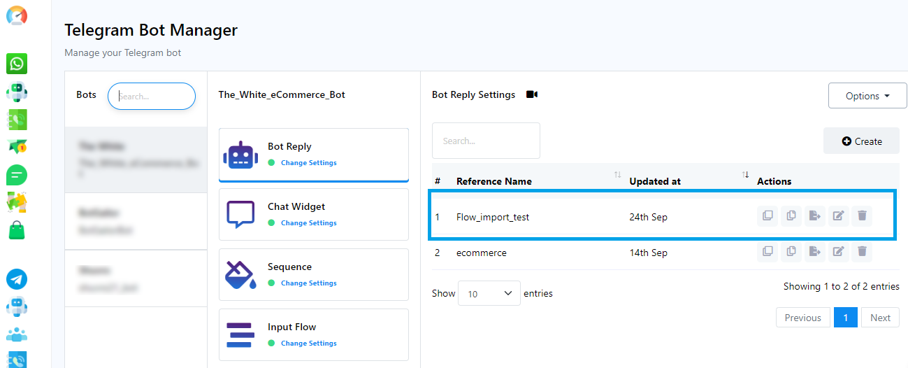 After the import, check the Bot Reply section of the selected bot within your Telegram Bot Manager. Your user bot list will be updated accordingly.