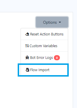 Flow Import: Flow Import, is the counterpart process to Flow Export. It involves taking a previously saved or externally created bot flow, often in a `.txt` and importing it into bot flow builder. This allows users to quickly integrate pre-defined conversational flows, bot structures into their projects without the need to recreate them manually. Flow Import simplifies the setup and configuration of chatbots by incorporating pre-existing bot flows.