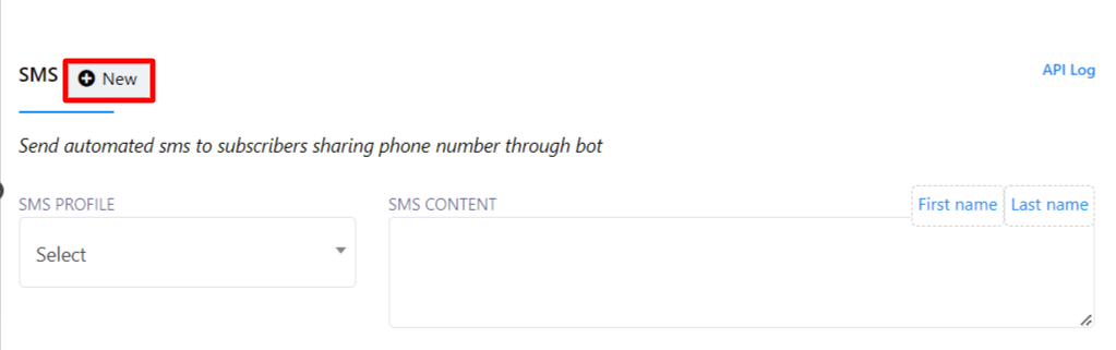 - Then, click the `New` button beside the SMS Profile.